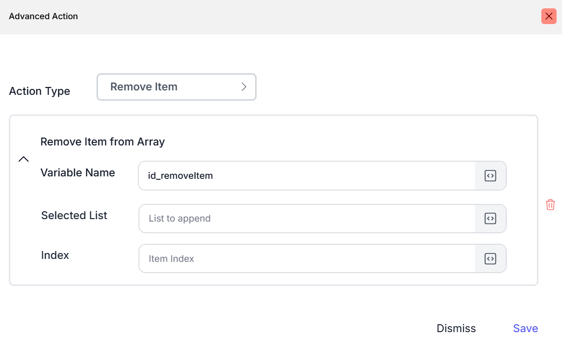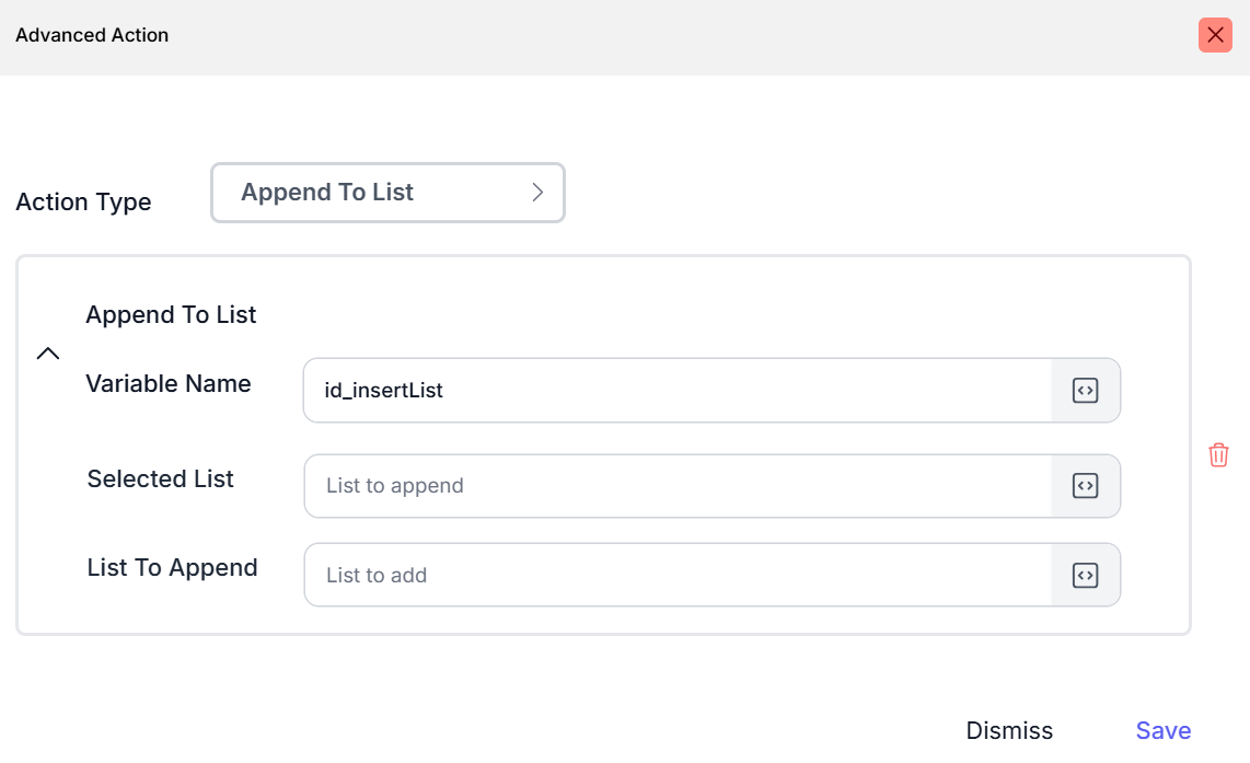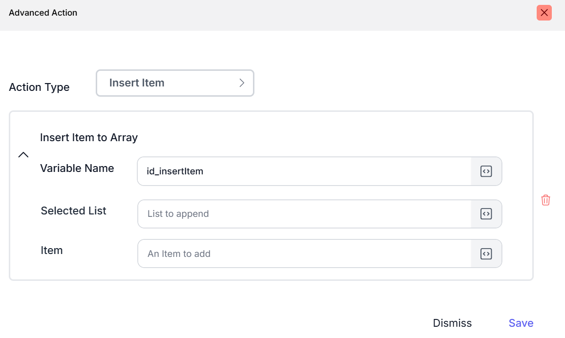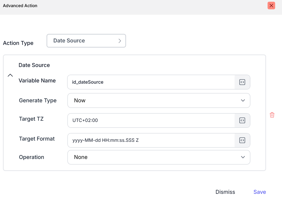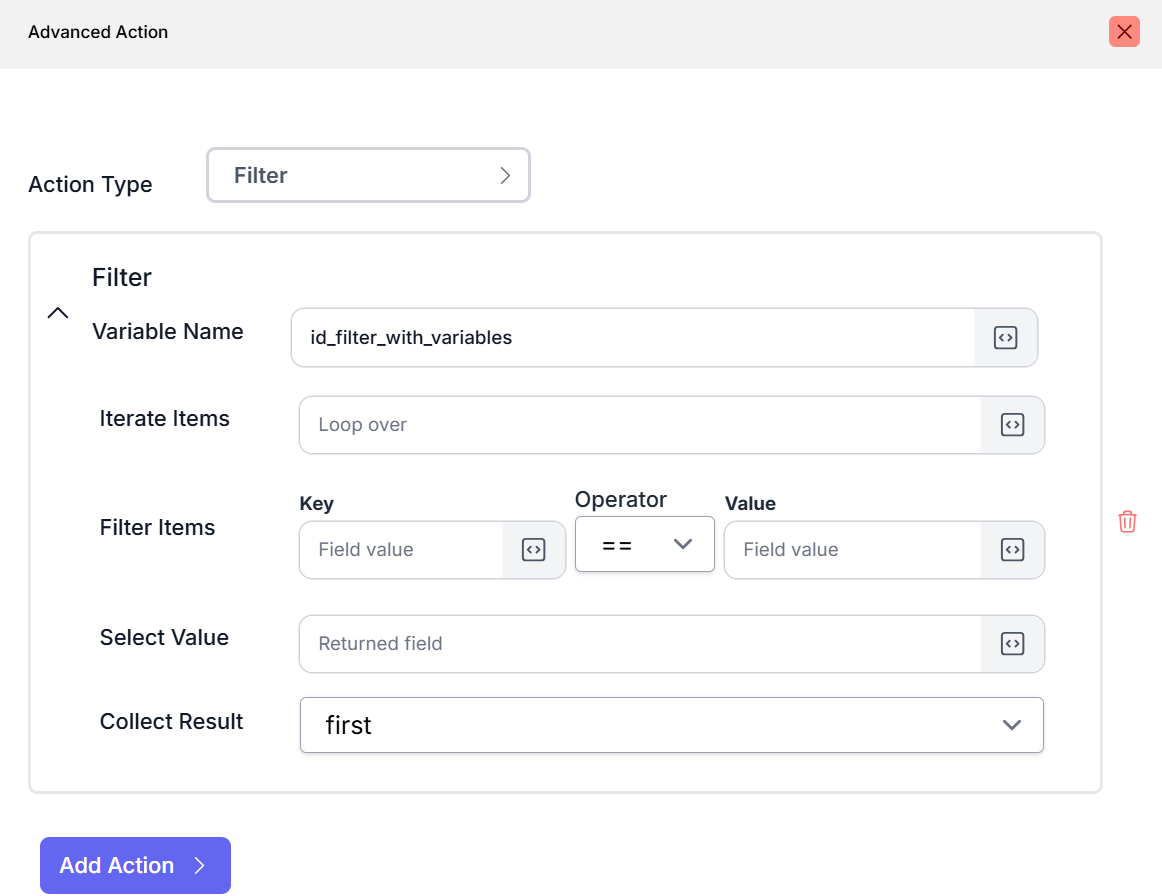 In the **Advanced Action** section, a variety of options are available to dynamically manipulate data: