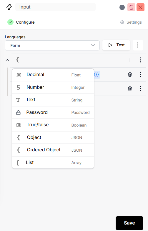 3. Inside the Data Mapper, define your data types such as `int`, `string`, or `boolean`. Once you've established a key for your value, you can choose to: