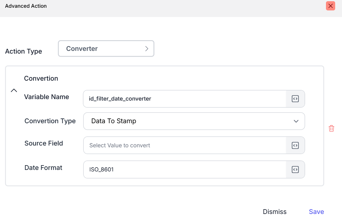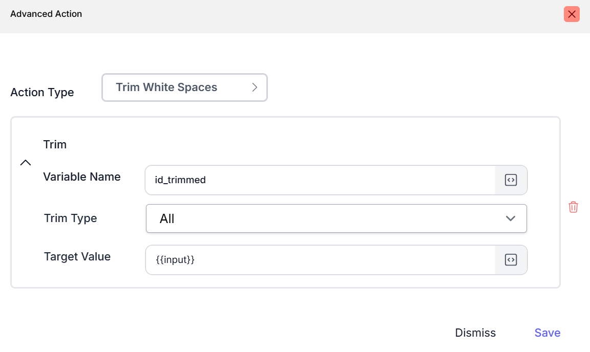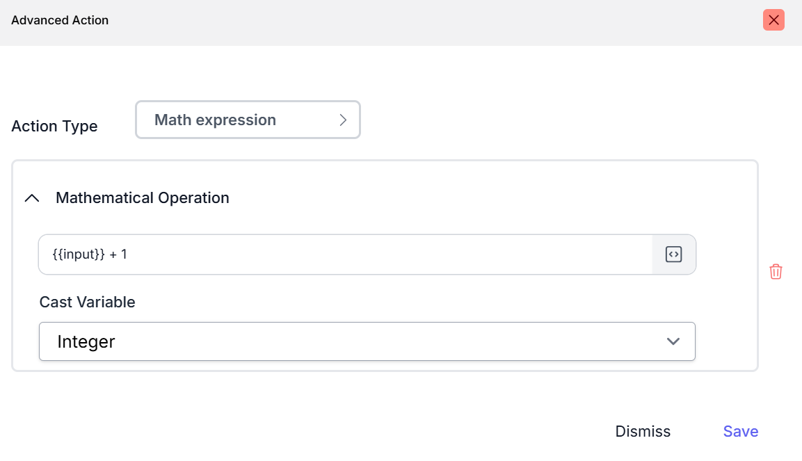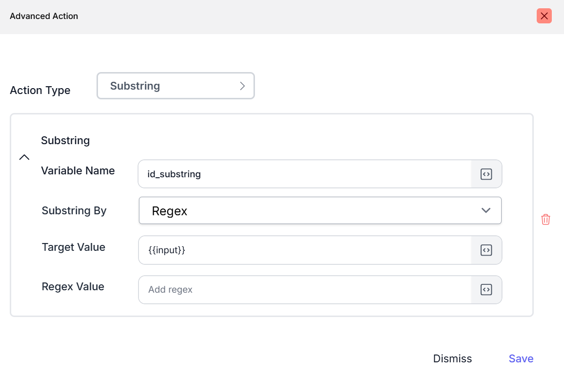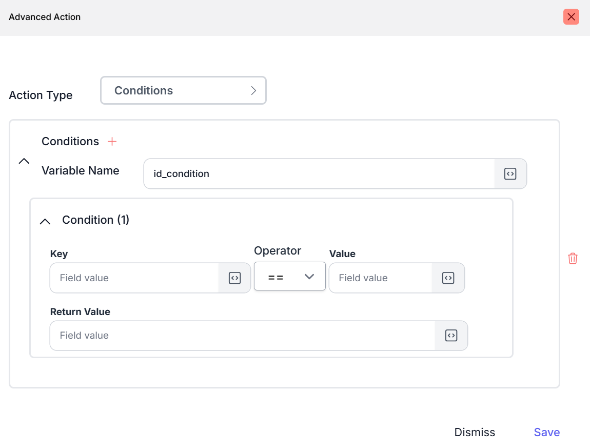 You need to fill in the following fields in the Advanced Action settings to map your value according to that action. **This is an example input for this Advanced Action:**