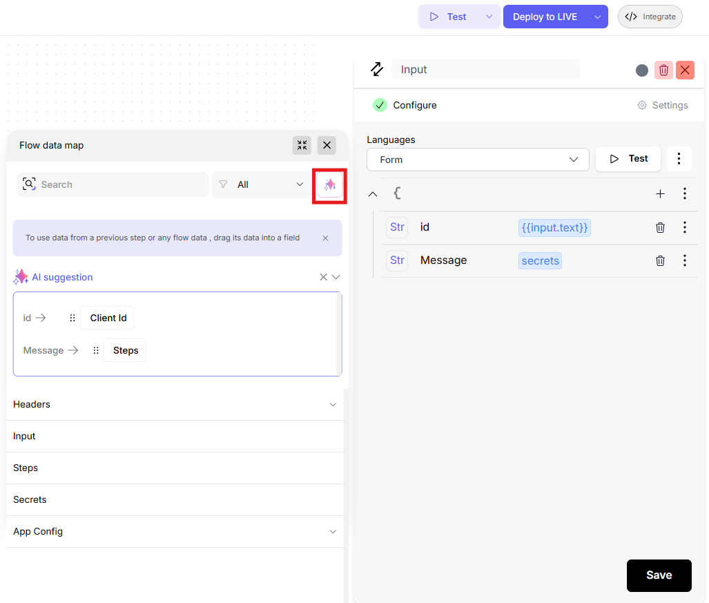 4. Utilize AI-assisted suggestions in the Data Mapper for efficient schema mapping. Use the search function in the Flow data Map to quickly locate and map items: